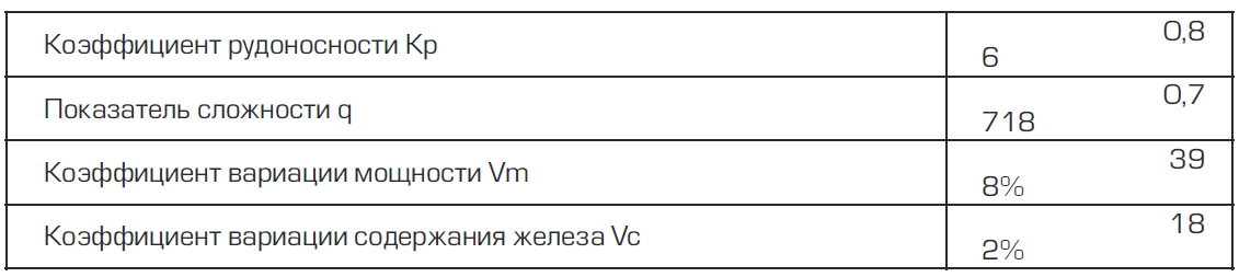 Таблица 2. Показатели изменчивости основных свойств оруденения для определениягруппы сложности геологического строения