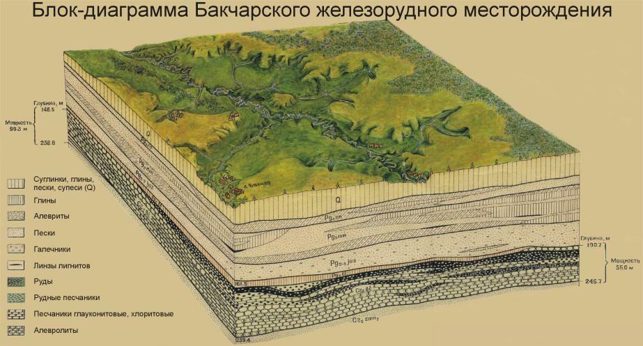 Рис. 1. Блок-диаграмма строения Бакчарского рудного узла